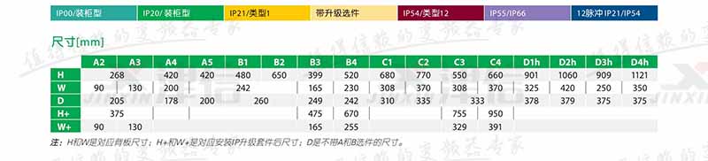 4、變頻器外殼封裝符合保護等級IP20另有IP00,IP21,IP54,IP55和IP66多種封裝等級可選。