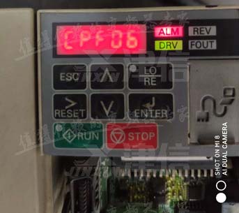 用戶送修一臺安川V1000變頻器,故障現象為上電后報警CPF06,無法復位 。